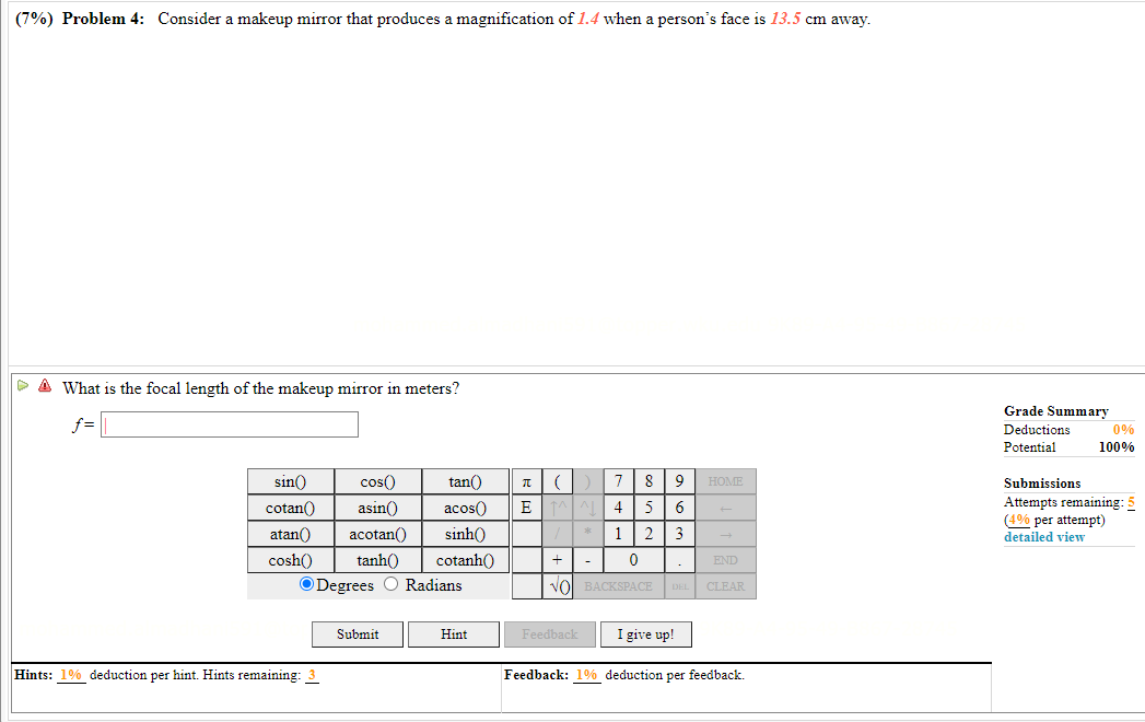 Get the answer to your homework. Consider a makeup mirror that produces a magnification of 15 when a persons face is 125 cm away What is the focal length of the makeup mirror in meters Grade Summary Deductions Potential 096 100 sin0 cotan0 asin acos0 atan0acotan sinh0. What is the focal length of a makeup mirror that produces a magnification of 150 when a persons.